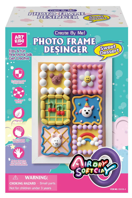 1. DECORATE THE CHARACTER WITH COLOR CLAY ON THE PHOTO FRAME ACCORDING TO THE STEPS WHICH WE SHOWED ON THE BACK SIDE OF THE BOX;