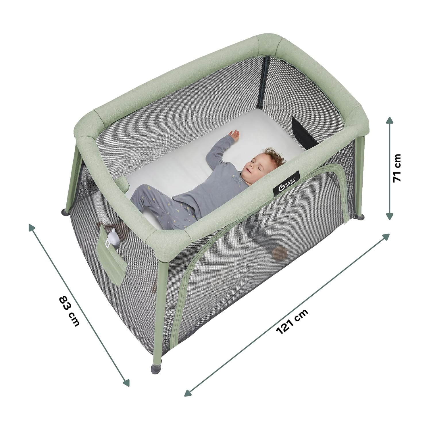 In summary, it's the perfect travel cot: a raised crib for babies up to 6 months, and a large travel cot for older babies. You'll be fully equipped for trips out with your child, with somewhere comfortable for them to sleep and play!"