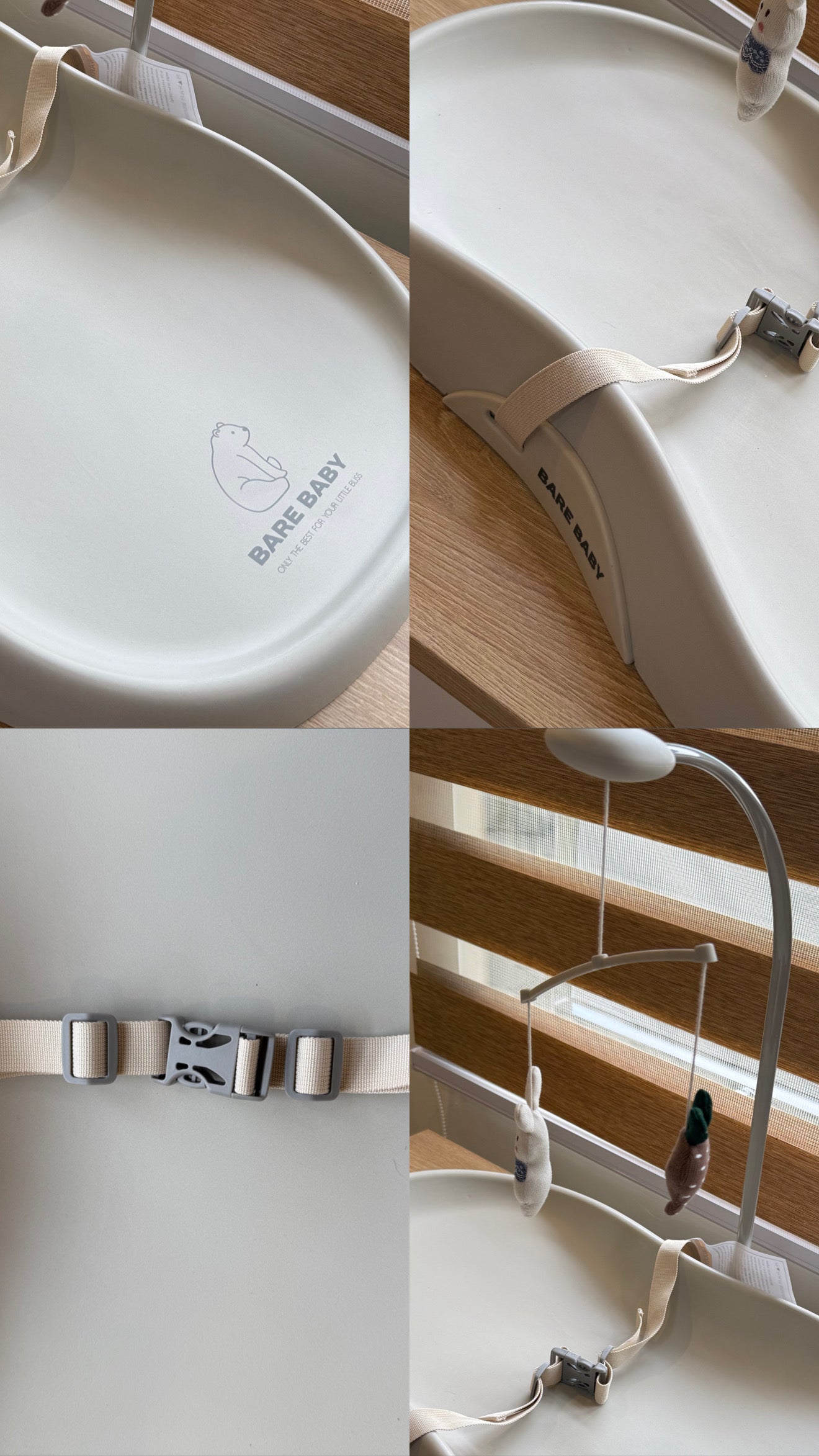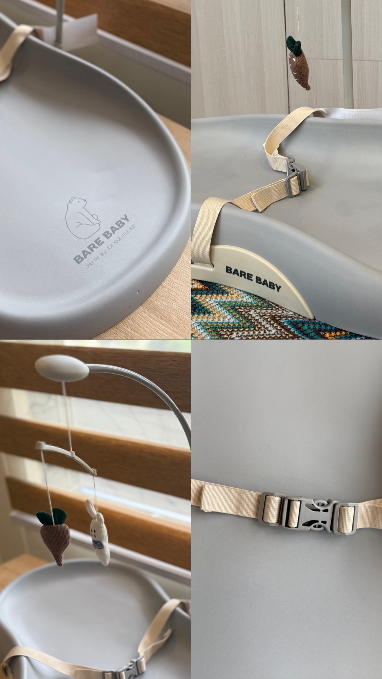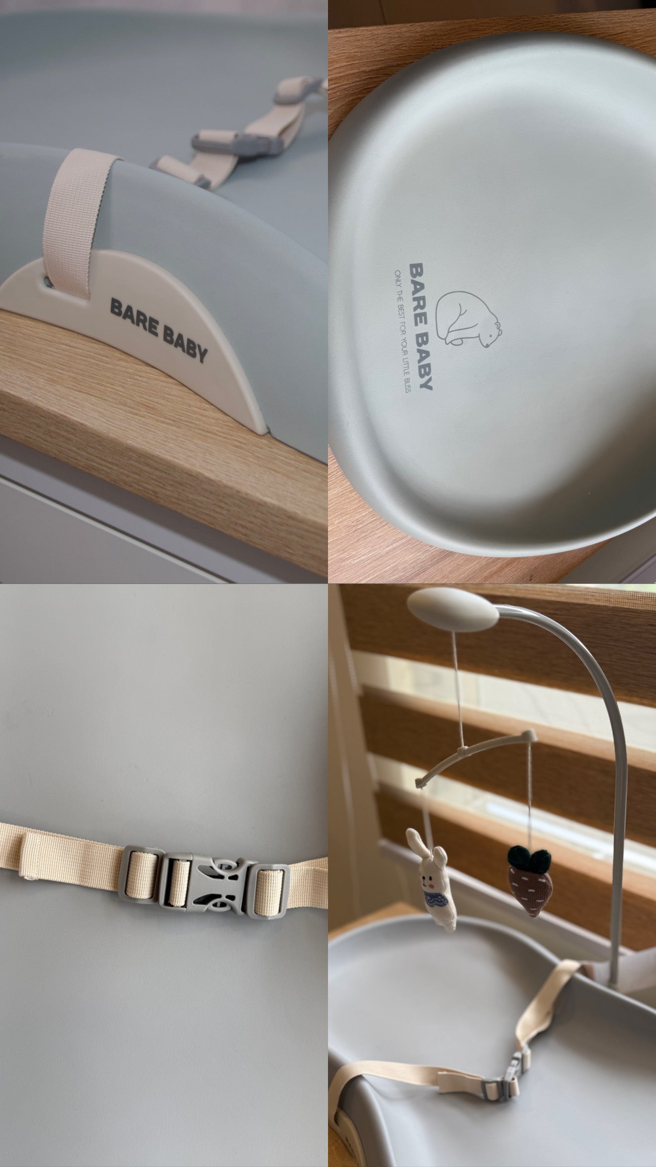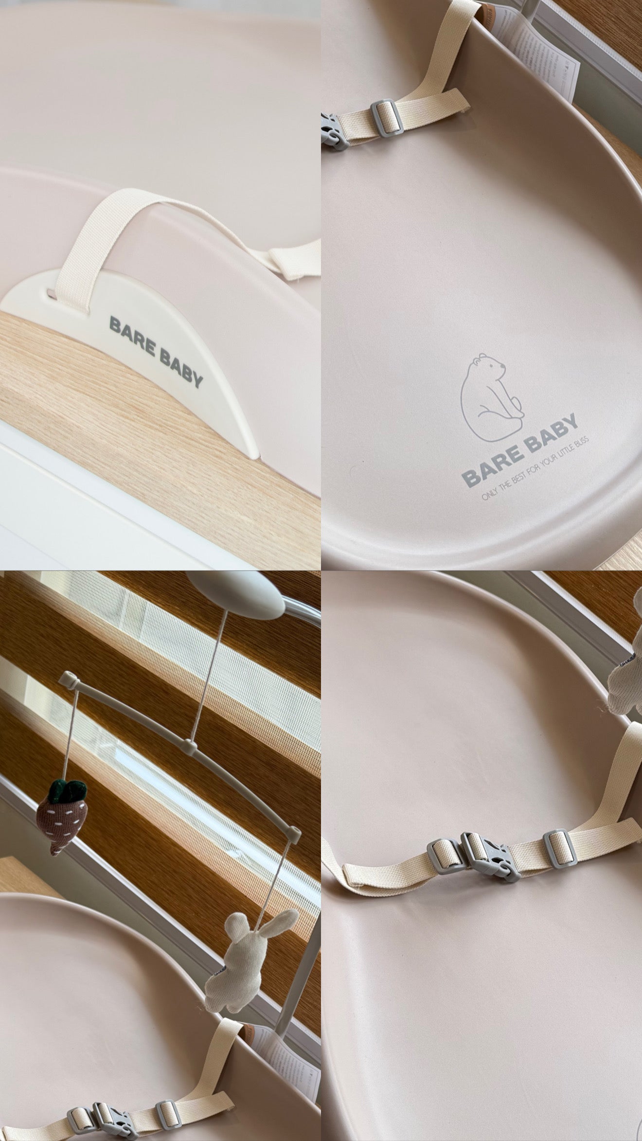 Bare Baby Premium Changing Pad with detachable toy, safety seatbelt, waterproof, easy to clean