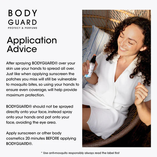 BODYGUARD® patented anti mosquito formula combines a light eau de cologne strength fragrance with an efficient insect repellent. Never before has an anti-mosquito product smelt so good!