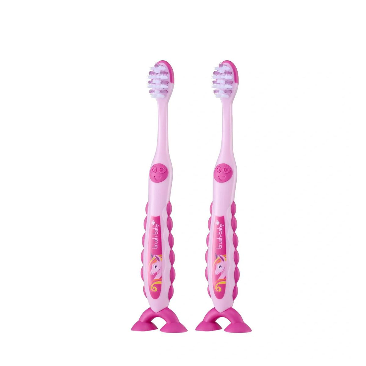 Suitable from age 3, the Brush-Baby FlossBrush (3-6 Years) is the ideal learner toothbrush, allowing your little one to learn to brush on their own and establish healthy brushing habits. The small brush head and easy grip handle make the brush easy for little hands to hold and control. Fun sucker feet allow you to store the toothbrush anywhere in the bathroom!