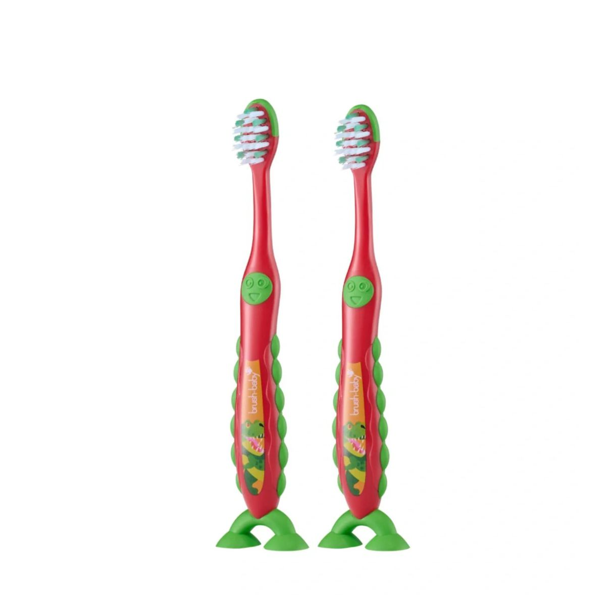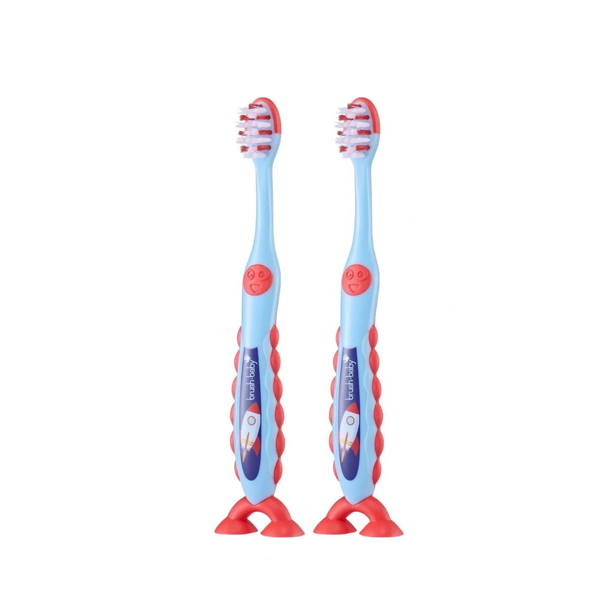 Use with a pea-sized amount of Brush-Baby Toothpaste at brushing time. To clean, rinse with water and leave to dry. Check before each use and replace toothbrush if damaged or when bristles become worn or splayed.