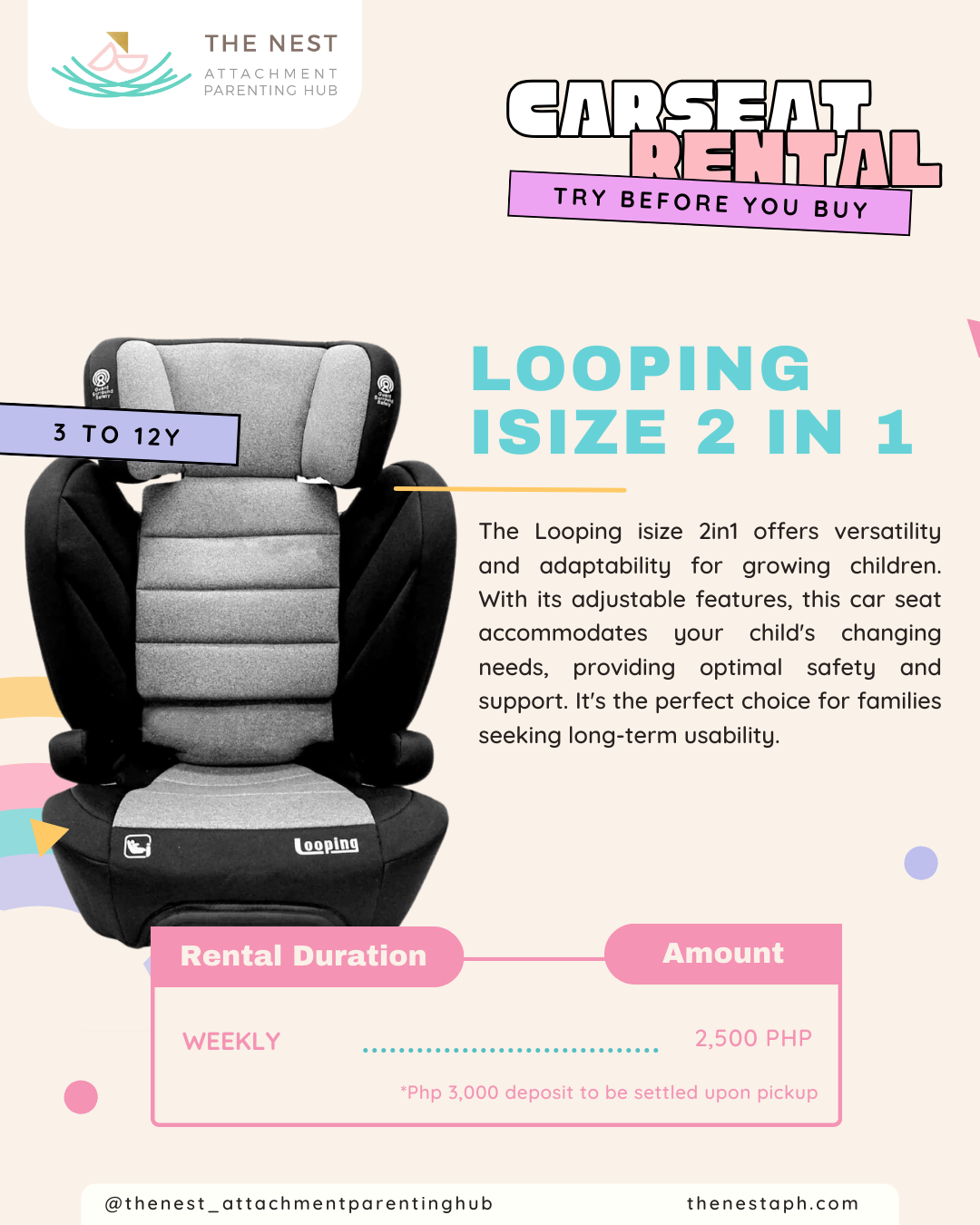 Looping isize 2in1: The Looping isize 2in1 offers versatility and adaptability for growing children. With its adjustable features, this car seat accommodates your child's changing needs, providing optimal safety and support. It's the perfect choice for families seeking long-term usability.
