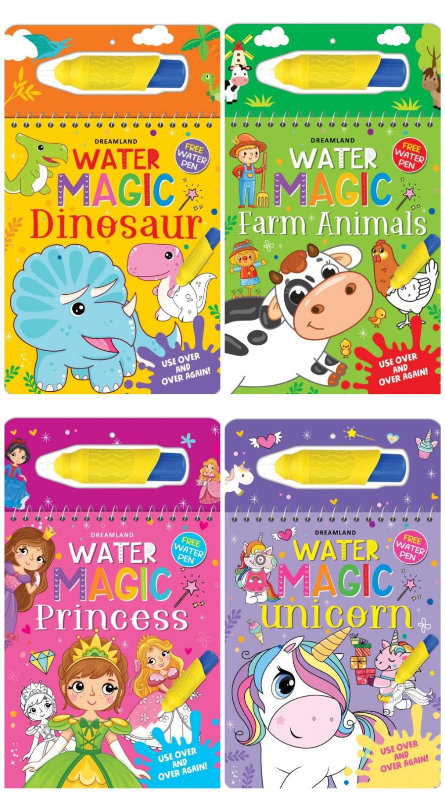 Each book of this set can come to colourful when painted with a special pen given with them. This pen can be easily used by just adding water. When the water dries, the colours disappear and the book pages can be painted again and again. Lovely kids are sure to enjoy these colouring books for a long time.
