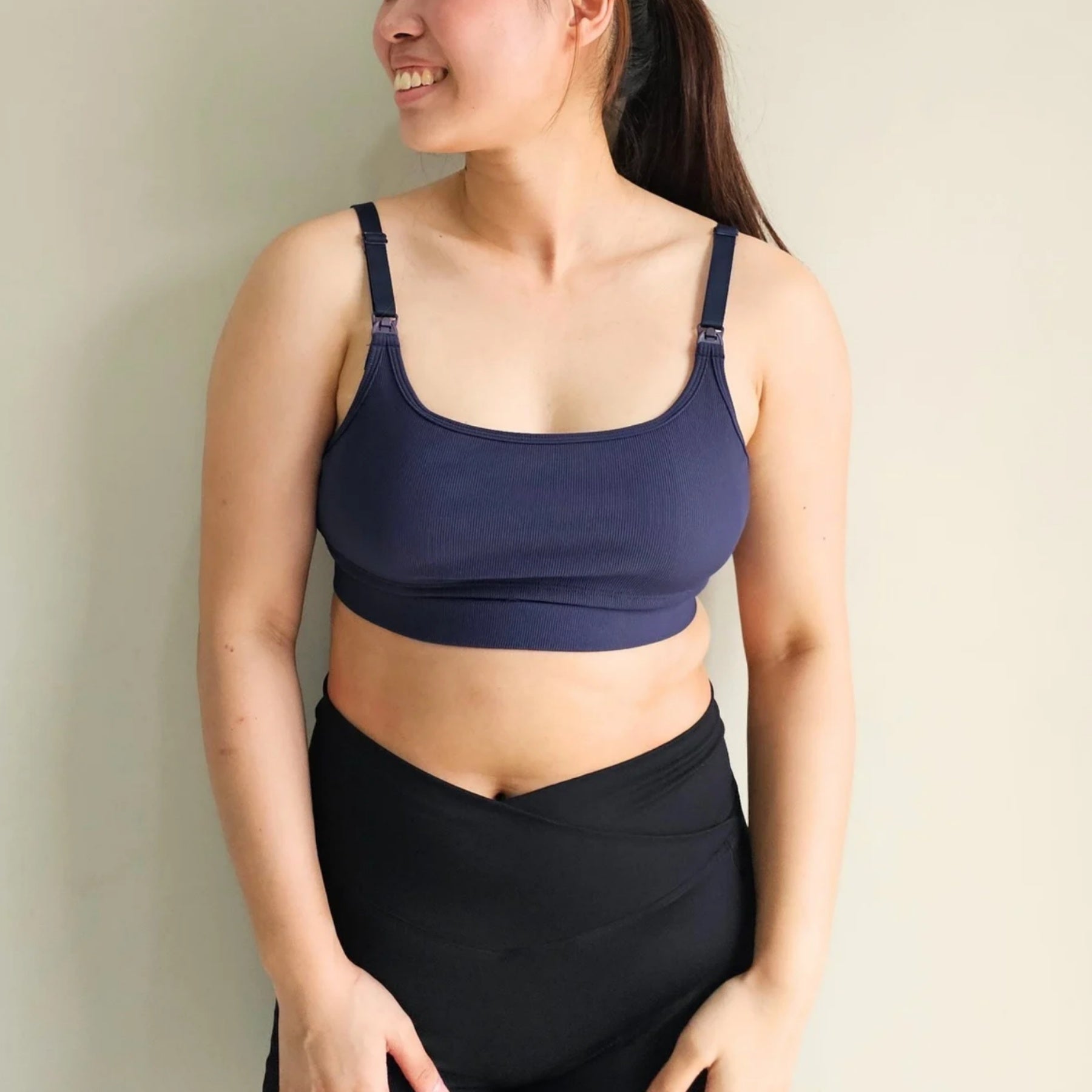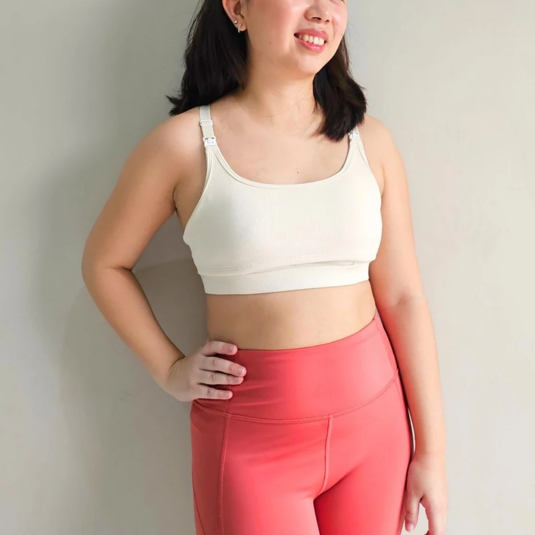 Our scoop neck bras are made of soft ribbed fabric (74% polyamide, 26% spandex). The back straps can be adjusted to straight or crossback straps, which makes the bra versatile as it can be used for pumping, nursing, and even for light workouts.