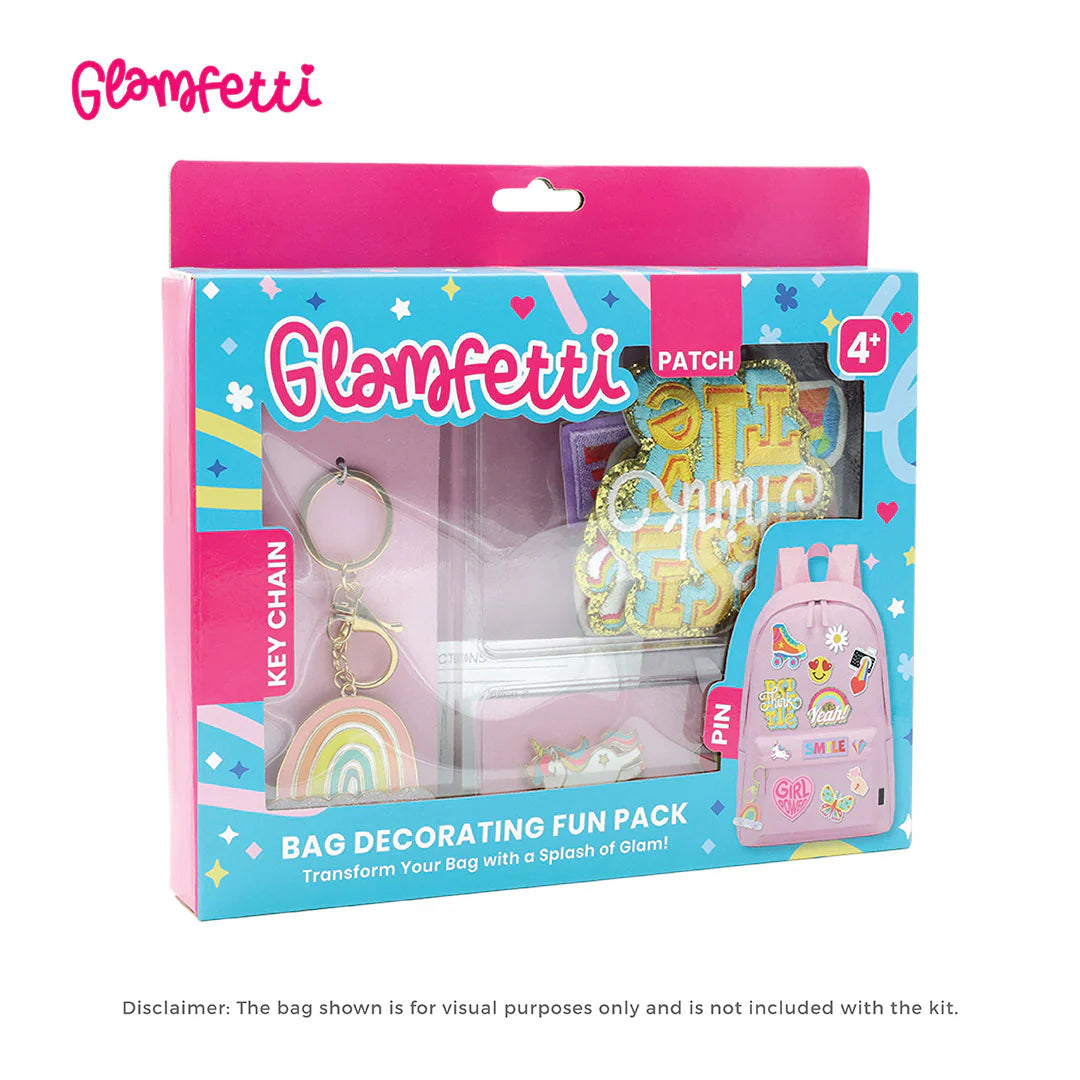 Make your bag one-of-a-kind with the Glamfetti Bag Decorating Fun Pack! This set includes vibrant patches, playful pins, and a chic keychain, letting kids customize their backpacks in the cutest way possible.