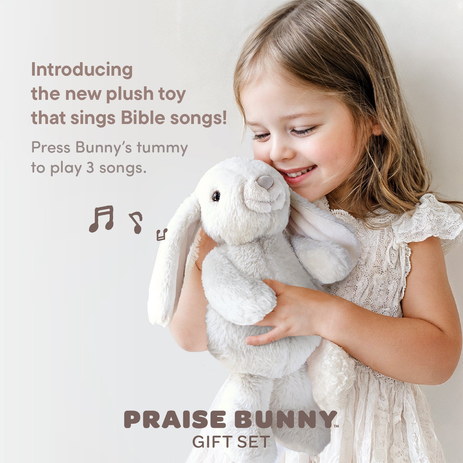 ● 11" Tall Praise Bunny Musica Plush Toy - has 3 songs included ("Praise Him,Praise Him", "God Made Me", "Ho-Ho-Hosannah")