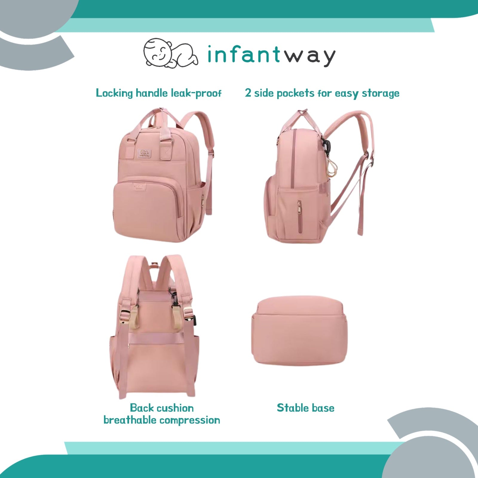 Discover Infantway’s ultimate practical diaper bags designed to make parenting on-the-go a breeze. These On-the-Go Mommy bags are waterproof and equipped with multiple compartments and pockets to keep all your baby essentials organized and easily accessible. With spacious interiors and durable materials, we offer ample room for diapers, wipes, bottles, and more. The adjustable straps and comfortable designs ensure carrying convenience for busy parents. These Mommy bags are both stylish and functional, perfect for everyday outings or travel.