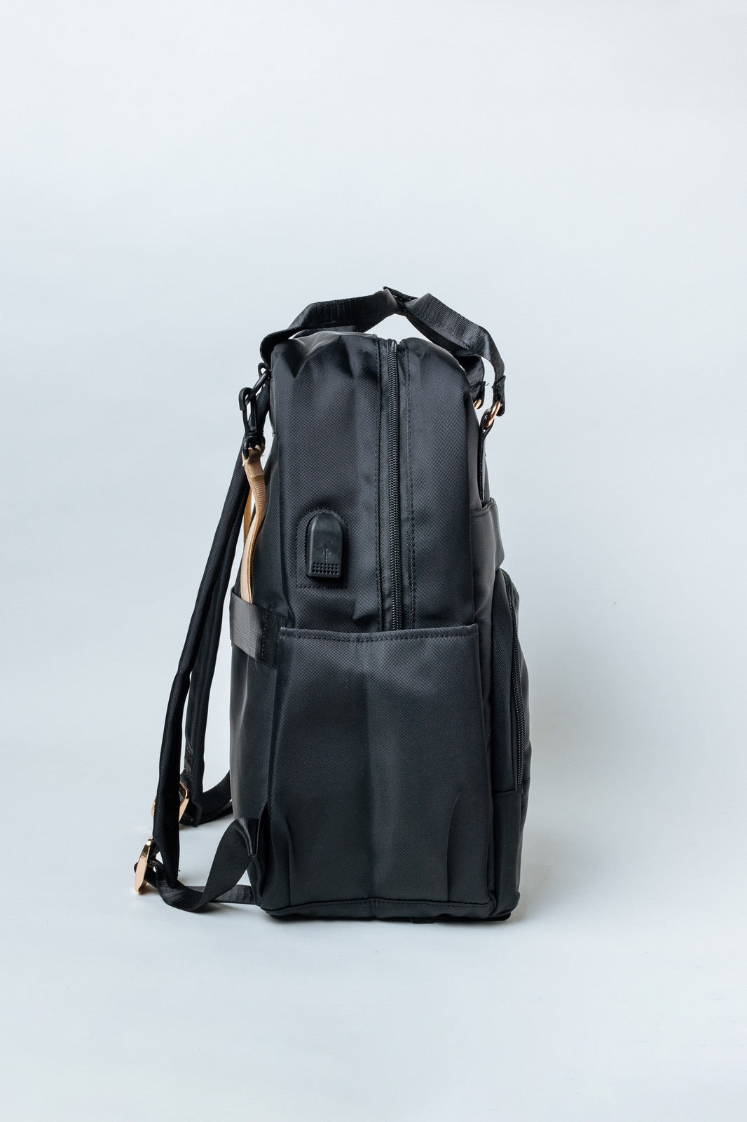 * USB charging Port • Backpack also has USB charging port,You can place your power bank into the inside pocket in the main compartment. Connect power bank and USB cable through outside port for charging. More convenient for charging your phone & heandphone when you’re outside and traveling
