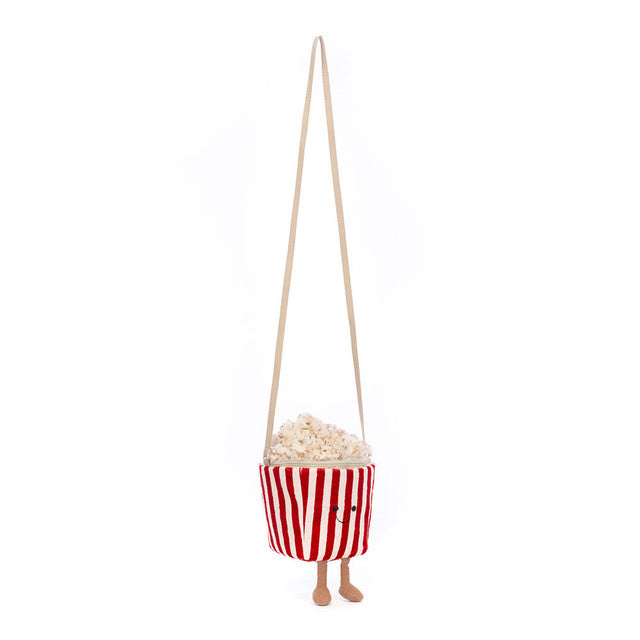 Make every stroll a premiere with Amuseables Popcorn Bag! This quirky bag has red-and-cream stripes, fluffy popcorn with caramel flecks, and fudge cord boots. With a cross-body strap, cotton lining and strong silver zipper, it's a movie-goer!