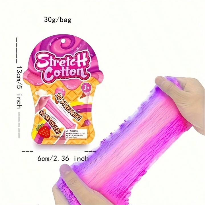 Stretchy, Soft & Fluffy Dream: A rainbow dream with a sweet scent that smells like cotton candy clouds! Stretch it, pull it and fluff it to watch it stretch over 20X in size!