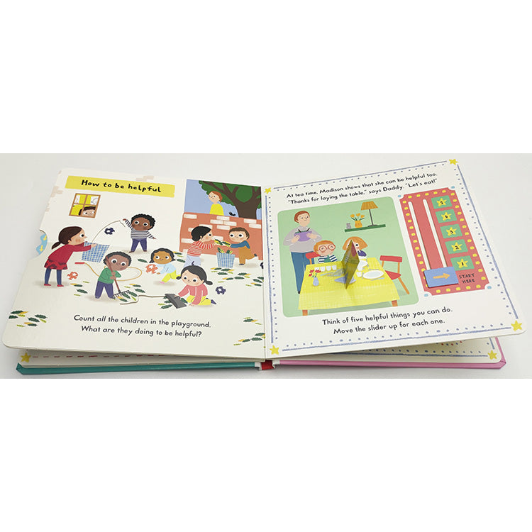 Each book in the Sing Along With Me! series has five slider mechanisms and a QR code inside that links to both an instrumental and vocal version of the nursery rhyme. Simply scan for little ones to listen and sing along! Follow the bus all through the town in The Wheels on the Bus.