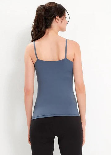 This tank top with cups can be worn easily and beautifully in one piece. The back part has no elastic band under the bust, making the back appear neater and flatter.