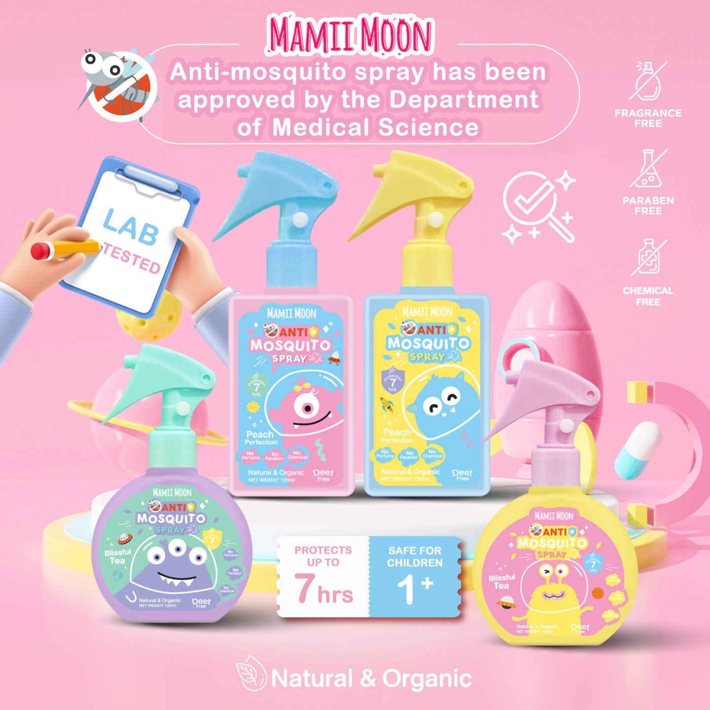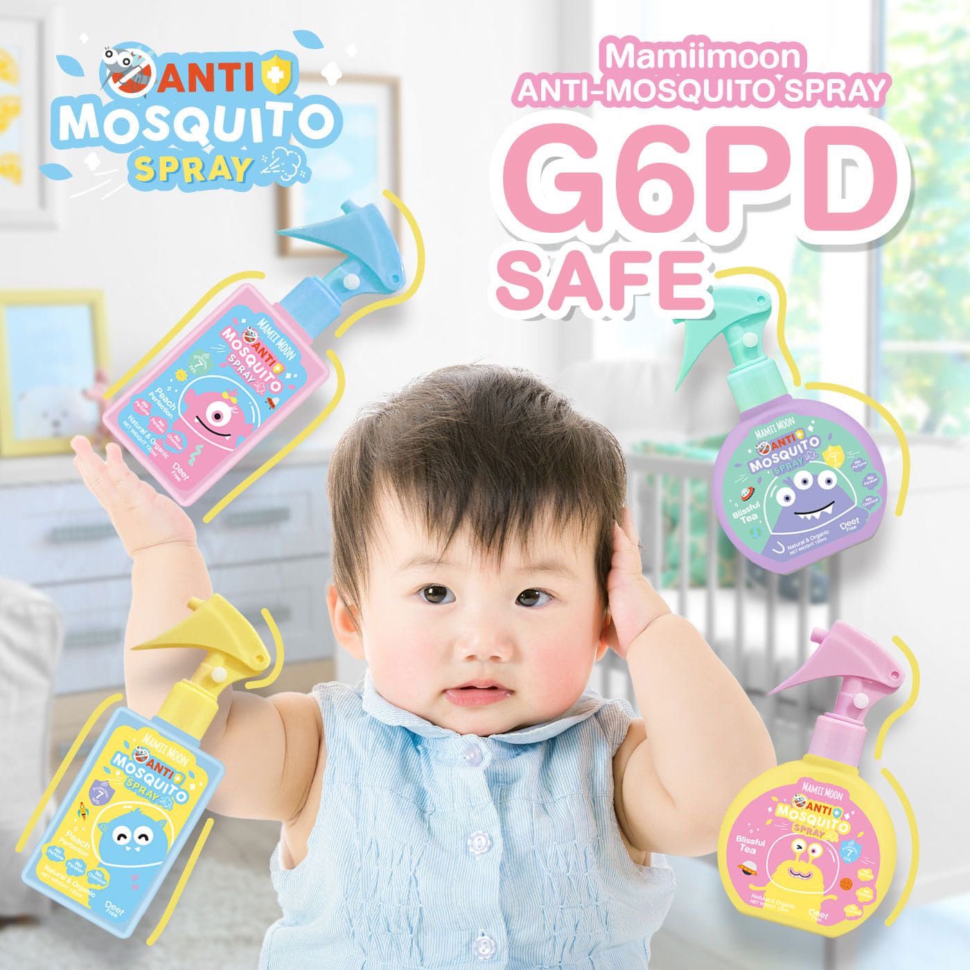 Mamii Moon Anti-Mosquito Spray – G6PD Safe Repels Mosquitoes Insects Natural and Organic Deet-free