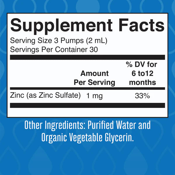 This liquid supplement is an easy way to provide Zinc to your infant to ensure they’re obtaining an optimal concentration of this trace mineral.