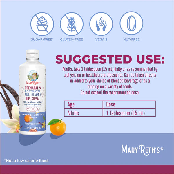 Formulated to support mom and baby from conception through nursing. This Prenatal & Postnatal Liposomal is designed to help support fetal development and healthy lactation via liposomal technology for enhanced absorption!