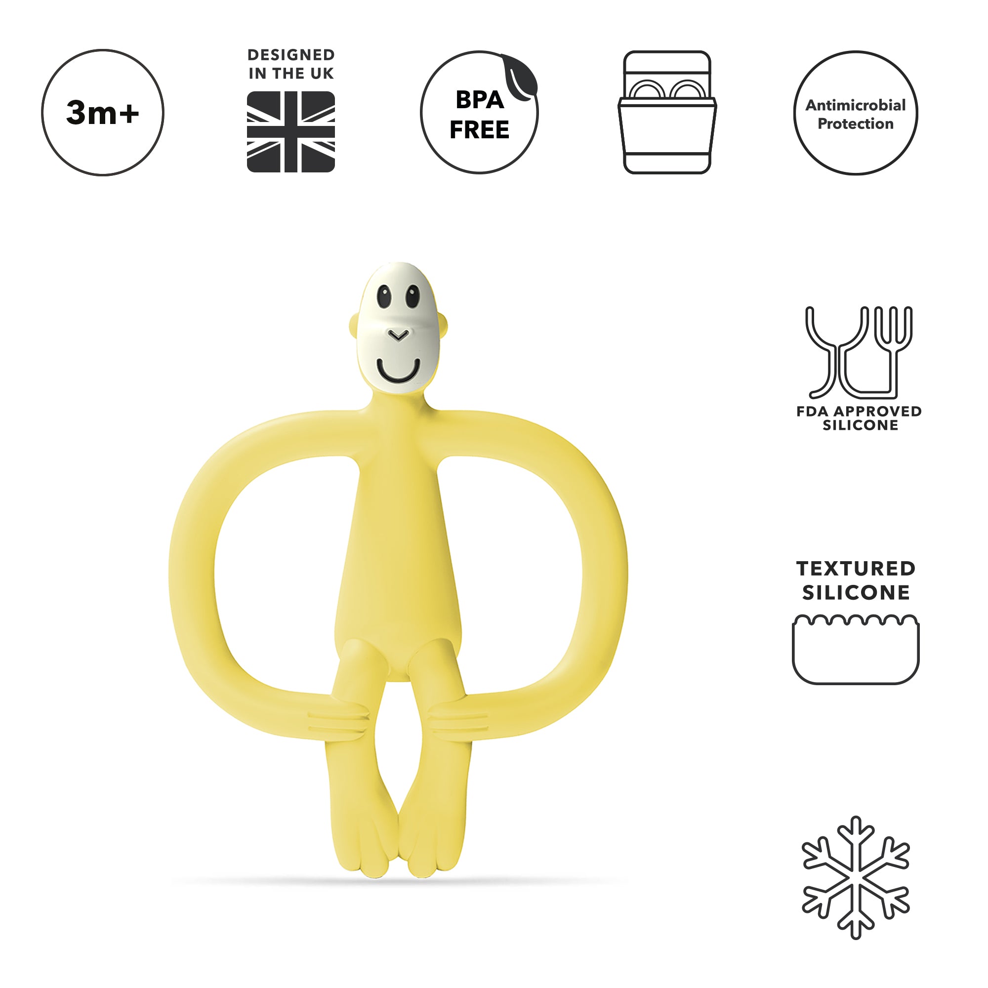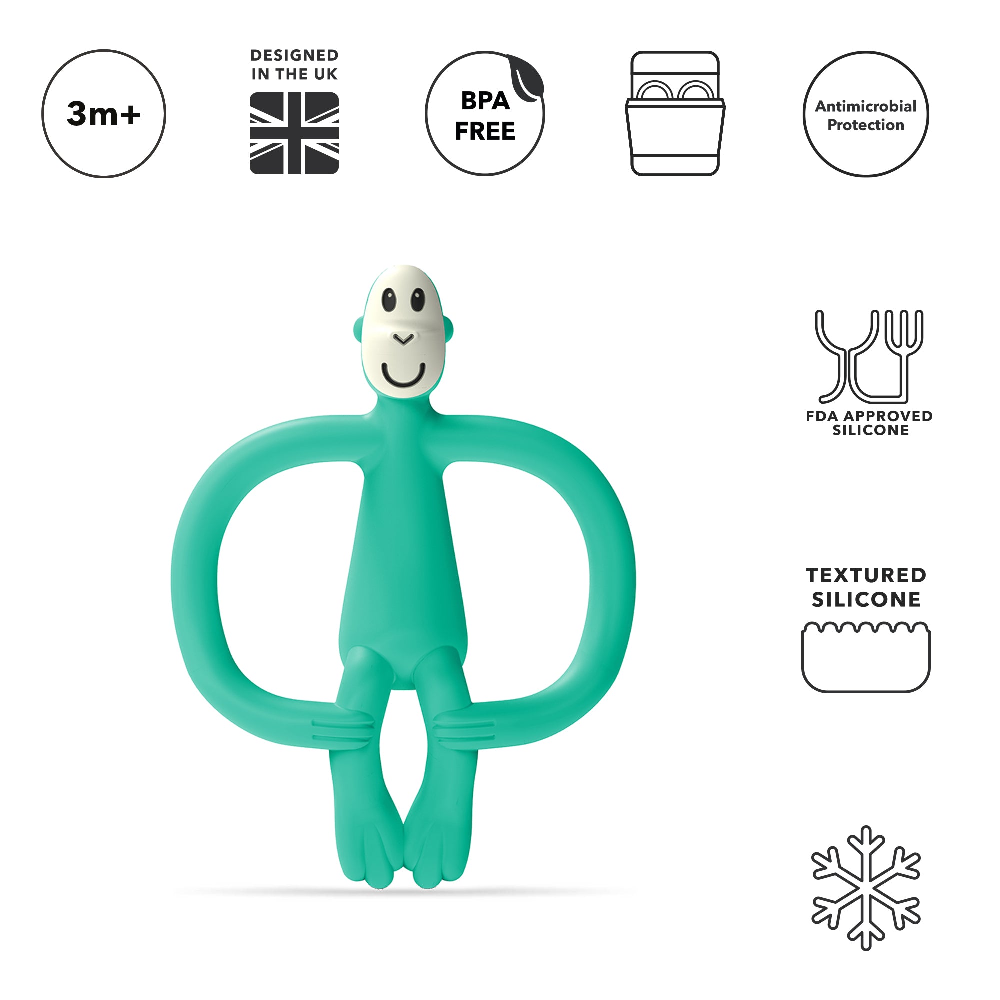 Matchstick Monkey is specially designed in United Kingdom to help teething babies, pass through this period with ease. It is a fun flexible teething applicator, which aids pain relief getting teething gels and granules right to the source of the pain with the bumps at the back of its head.