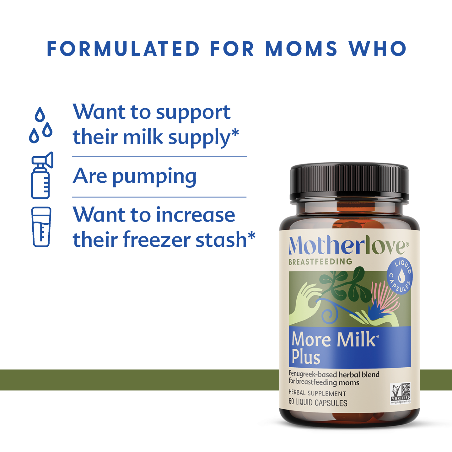 More Milk Plus has been supporting moms' breast milk supply for over 20 years. This fenugreek-based lactation supplement is a blend of four organic herbs that work as hard as you do—fenugreek, blessed thistle, nettle, and fennel.