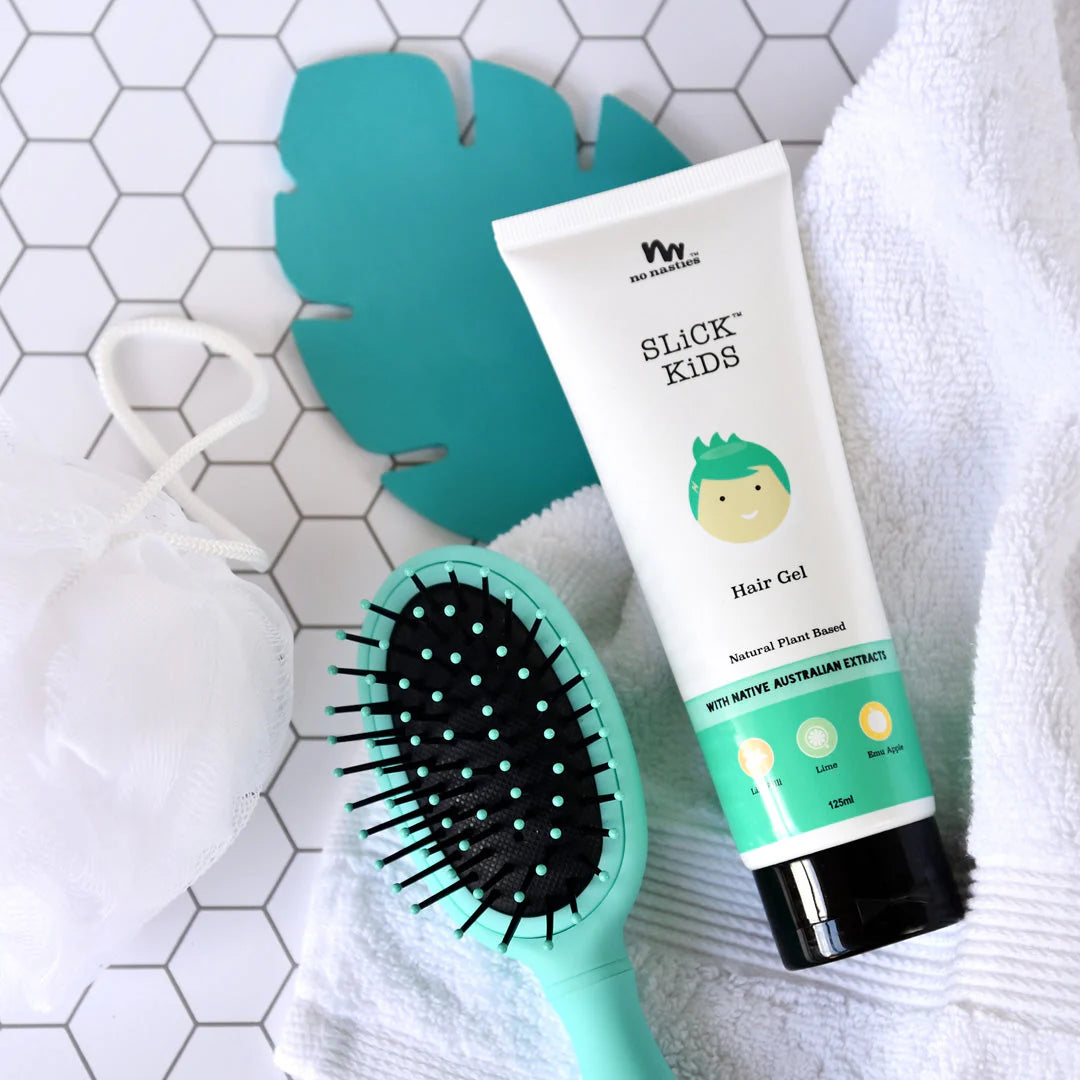Slick Kids natural/plant-based Hair Gel offers medium hold and shine. Infused with Aloe Vera to soothe and hydrate hair and scalp, Lilli Pilli to add shine and fullness and Emu Apple to provide superior rich gloss and anti-frizz properties. With the uplifting scent of zesty Lime and fresh Mint, you’ll be feeling as cool as you’ll be looking!