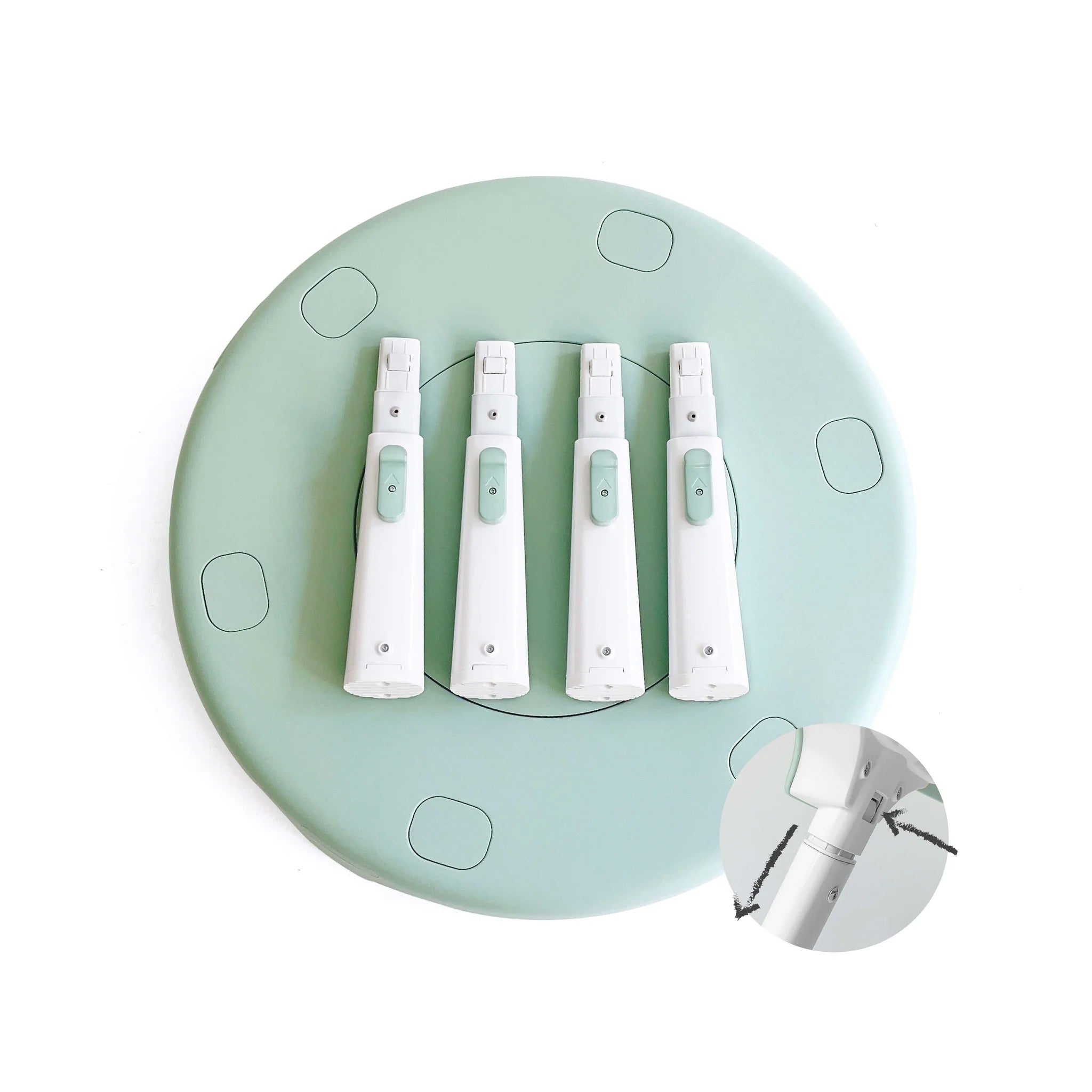 With a push of a button, you can easily snap out the legs of the PortaPlay Play Table and store it away!