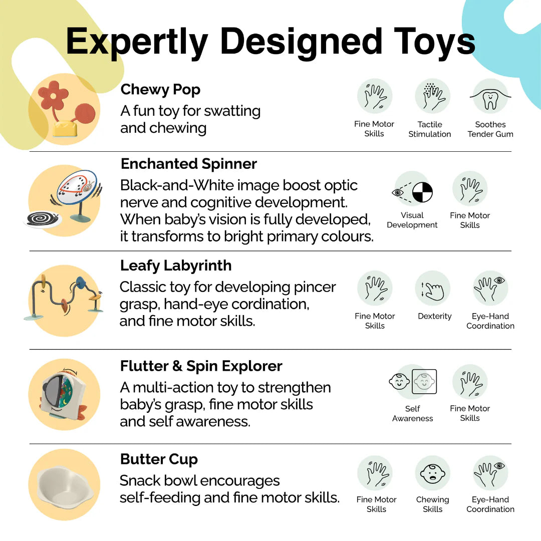 Each toy is carefully crafted in collaboration with pediatric occupational therapists to meet holistic, age-appropriate developmental goals, supporting sensory, cognitive, and motor skill growth.