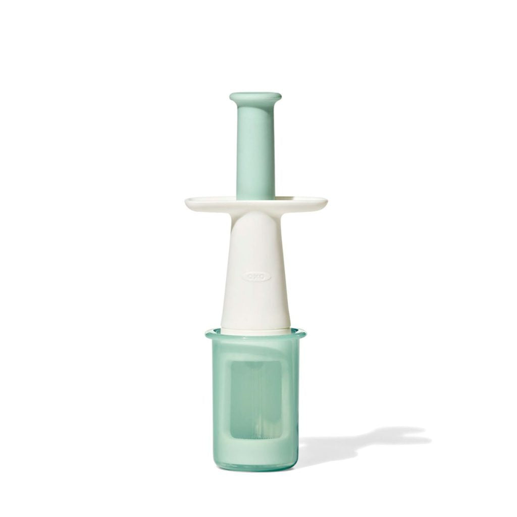 Take the hassle out of quartering grapes for your little one with the OXO Tot Grape Cutter. Sharp, serrated stainless steel blades quickly and easily slice grapes, while hands stay safe and out of the way. The curved finger rests provide comfort, even during repetitive use.