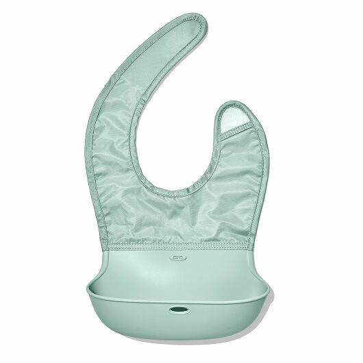 Make mealtime messes manageable with the OXO Tot Roll Up Bib. The soft, food-safe pocket is wide enough to catch any pieces of food that miss baby’s mouth. When you’re out, simply roll the Bib’s fabric into the silicone pocket, secure closed and tuck into a diaper bag.