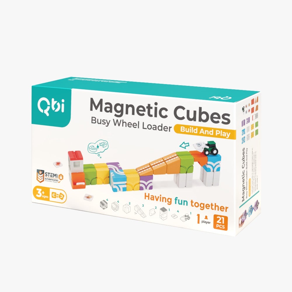 Qbi Patented Magnetic Track Cubes offer multi-directional attachment and a variety of track patterns. Plus, every set can be interconnected for endless possibilities and expansion, inspires players to think outside the box, and brings imagination and inspiration to creation.