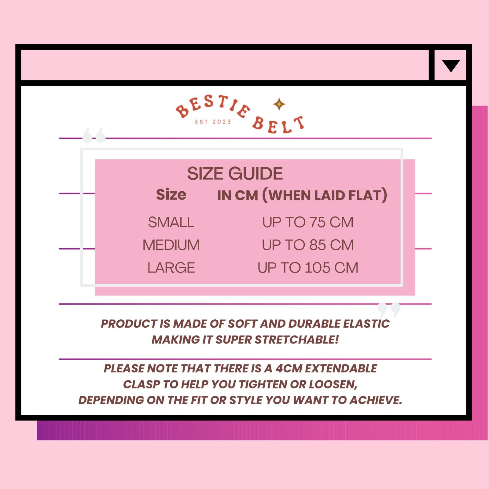 The Bestie Belt is a styling tool that you can use to alter the look or style of your clothes. You can do a front tuck or a side tuck to give your outfit that extra oomph! You can also shorten a dress that's a tad bit long.