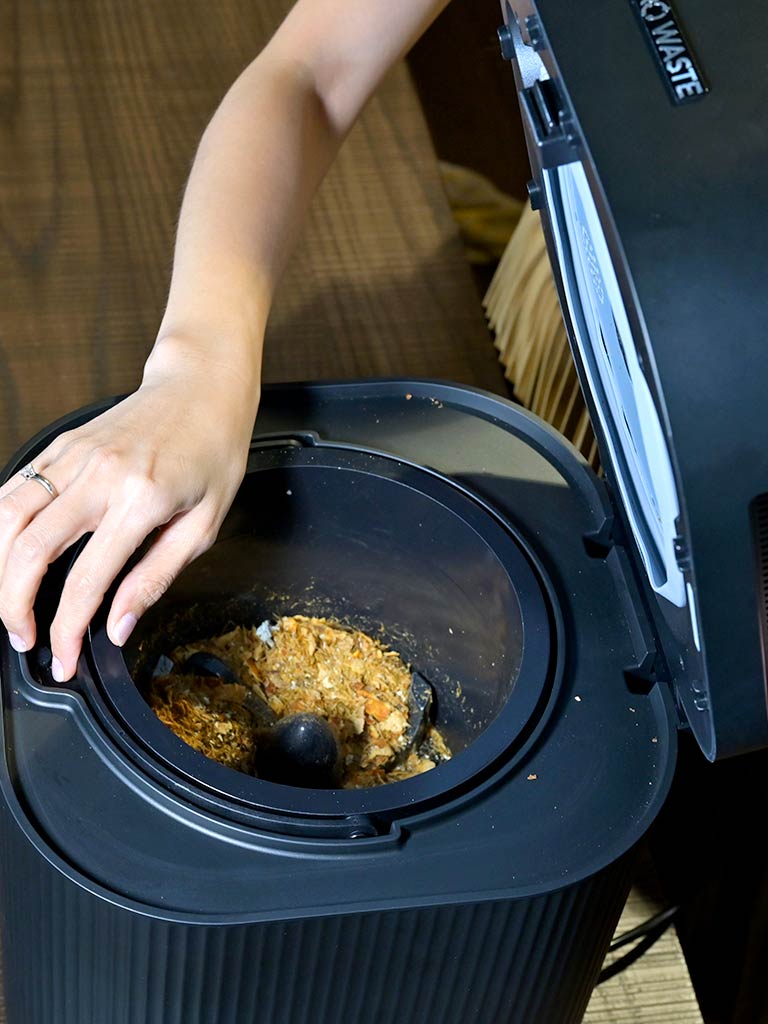 Going zero-waste just takes just a push of a button and after a few hours, you get an organic soil additive that provides nutrients to your soil which aids in plant growth.