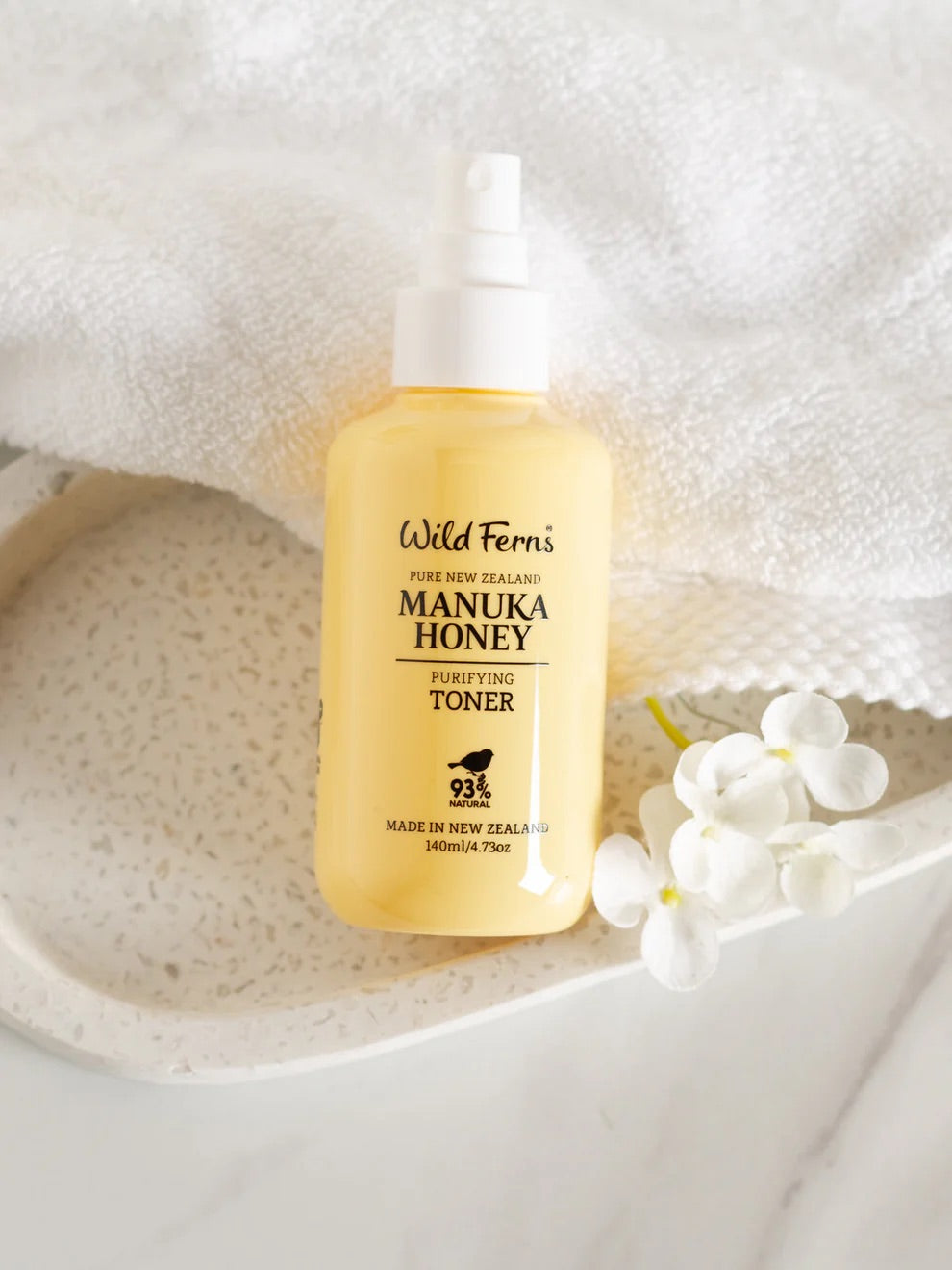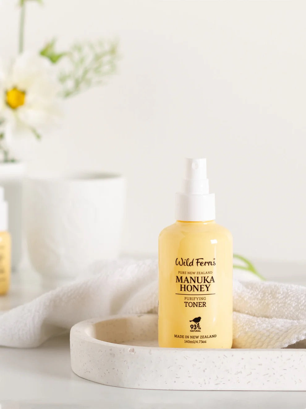This purifying toner thoroughly removes remaining traces of oil, makeup, and dirt, and prepares the skin to maximise the benefits of your moisturiser. Contains the beneficial qualities of premium certified Manuka Honey 80+ blended with Aloe Vera, Bilberry, and Witch Hazel. These natural ingredients combine to lock in moisture, tighten the pores, and maintain the skin's elasticity. Manuka Honey 80+ helps eliminate impurities and minimise the appearance of blemishes, to give your skin more clarity and freshness.